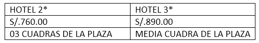 LOS COSTOS VARIAN SEGÚN EL HOTEL ELEGIDO Y EL NUMERO DE PERSONAS